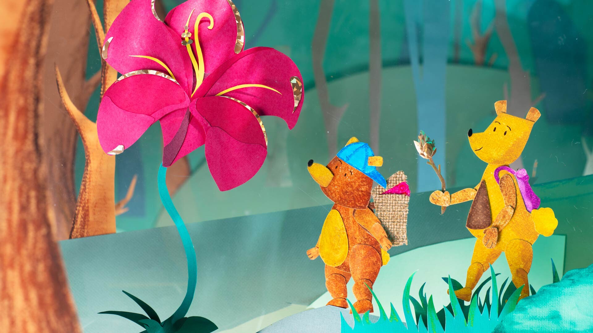 While walking in the woods, two bears learn the power of sharing
